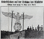 Im Sommer 1938 bauten die Nationalsozialisten eine Tribüne auf das „Maifeld“, zu der zwischen zwei pyramidenartigen Stümpfen eine breite Treppe führte. Ein Jahr später ergänzten sie die Tribüne mit einem Hoheitsadler und einem Hakenkreuz. Die Flügelweite des Adlers betrug 20 Meter.