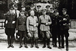 Gruppenbild „Alter Kämpfer“ der NSDAP im Rheinland (vorne, 2. v.l.: Josef Grohé, daneben Robert Ley und Richard Schaller (2.v.r.)