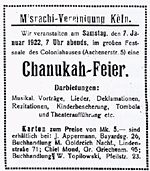 Anzeige der „ostjüdischen“ Misrachi-Vereinigung aus dem „Jüdischen Beobachter“, 1921/22