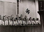 Jungmädel während einer Propagandaveranstaltung im Kölner Gürzenich, Februar 1939
