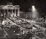 Inszenierter Fackelzug der SA durch das Brandenburger Tor anlässlich der Machtübernahme (Propagangafoto)