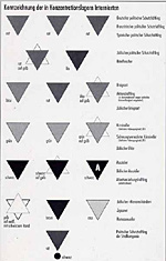 Wimpel zur Kennzeichnung von KZ-Häftlingen (aus: Enzyklopädie des Holocaust)