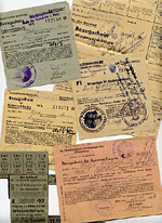 Noch vor dem Ausbruch des Krieges wurden mit der "Verordnung zur vorläufigen Sicherstellung des lebenswichtigen Bedarfs des deutschen Volkes" vom 27.08.1939 Lebensmittel und Konsumgüter rationiert. Sie waren künftig nur noch bei gleichzeitiger Vorlage von Bezugsscheinen (v. a. Lebensmittelkarten wie die "Reichsbrotkarte" oder die "Reichsfleischkarte"), die Mengenbeschränkungen vorsahen, zu kaufen. Ab November 1939 wurden auch Textilien rationiert ("Reichskleiderkarte"), später noch Tabak ("Raucherkarte"), Fahrradreifen und immer mehr Gegenstände des täglichen Bedarfs.