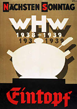 In der "Volksgemeinschaft" sollte sich der vom NS-Regime propagierte und auf gegenseitiger Hilfe basierende "Sozialismus der Tat" verwirklichen. Ein Schritt in Richtung auf eine solche völkische Solidargemeinschaft sollten die im September 1933 eingeführten "Eintopfsonntage" darstellen. An jedem ersten Sonntag im Monat sollten in ganz Deutschland statt üppiger Sonntagsbraten nur Eintopfgerichte gegessen und die so eingesparten Gelder dem Winterhilfswerk (WHW) gespendet werden. Hierzu wurden öffentliche Essen veranstaltet, bei denen auch die NS-Prominenz Eintopf aß.