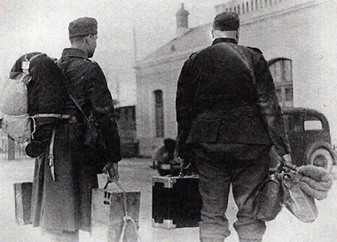 Deutsche Soldaten auf dem Weg aus Frankreich nach Hause, Dezember 1940