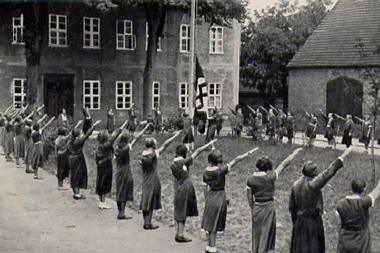 Der %84Deutsche Gru%DF%93 %96 hier w%E4hrend eines Flaggenappells des BMD im Jahr 1933