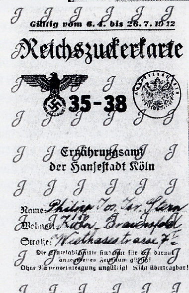 Mit einem %84J%93 gekennzeichnete %84Reichszuckerkarte%93 aus dem Jahr 1942