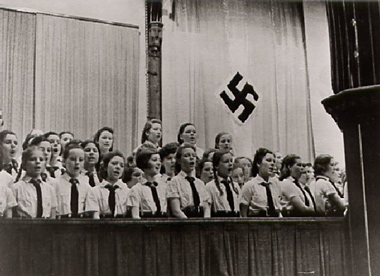Jungm%E4del w%E4hrend einer Propagandaveranstaltung im K%F6lner G%FCrzenich%2C Februar 1939