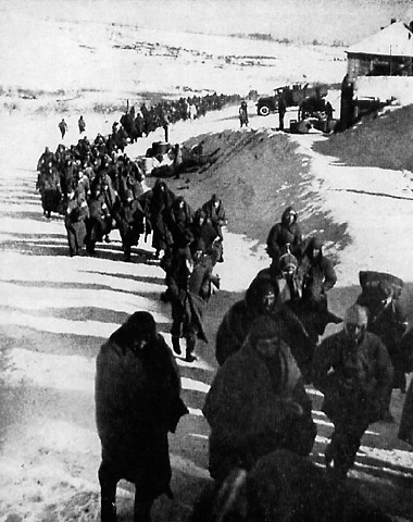 Deutsche Kriegsgefangene nach der Kapitulation der 6. Armee bei Stalingrad