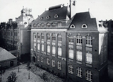 Volksschule Pf%E4lzer Stra%DFe um 1914 %28im Hintergrund das Schulgeb%E4ude Burgunderstra%DFe%29