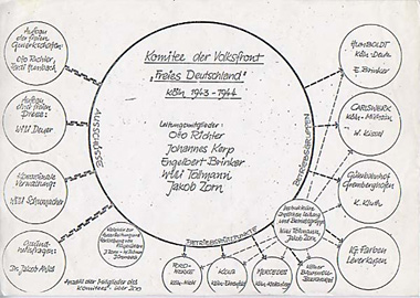 Skizze der Organisationsstrukturen des K%F6lner Komitees der %22Volksfront Freies Deutschland%22