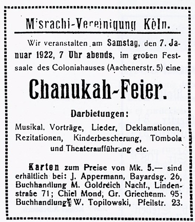 Anzeige der �ostj�dischen� Misrachi-Vereinigung aus dem �J�dischen Beobachter�, 1921/22