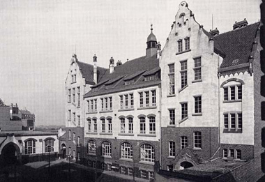 Die Volksschule Balthasarstra�e (heute: Nikolaus-Gro�-Schule), Hofansicht von S�den um 1914